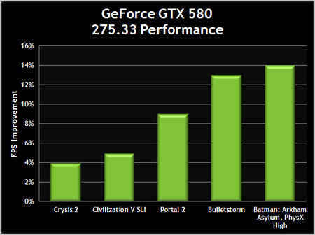 Après deux semaines de beta test, NVIDIA propose désormais au téléchargement la version certifiée WHQL de ses drivers GeForce et Verde de la branche R275. Il s'agit plus précisément de la version 275.33 WHQL qui remplace la version 275.27 beta.Hormis la signature numérique de Microsoft, cette mise à jour reprend exactement les mêmes améliorations que la version beta à savoir le support des nouveaux GPU GeForce GT 545 et GeForce GTX 560, des gains de performances importants pour les GeForce 400 et 500 dans plusieurs jeux vidéo, la mise à jour automatique des profils SLI et Anti-Aliasing grâce à l'utilitaire NVIDIA Update, un nouveau pilote HDMI High Definition Audio (1.2.23.3), un nouvel onglet dans le panneau de configuration pour le réglage du Desktop Scaling ou encore plusieurs optimisations de la technologie stéréoscopique 3D Vision. A noter tout de même dans ces drivers 275.33 WHQL la correction d'un problème de baisse des performances du jeu vidéo The Witcher 2 Assassins of Kings suite à l'installation des drivers 275.27 beta. Le jeu The Witcher 2 ne prenait en effet pas en compte la désactivation de la fonction 3D Vision par l'utilisateur dans le panneau de configuration NVIDIA et vérifiait en permanence l'activation ou non du mode 3D Vision entraînant ainsi une baisse importante des performances. Ces drivers 275.33 WHQL sont disponibles aussi bien pour les GPU desktop (drivers GeForce) que pour les GPU mobiles (drivers Verde Notebook). Le GPU GeForce GTX 560M fait d'ailleurs sont apparition dans la liste des matériels compatibles mais les drivers Verde R270 et R275 restent toujours indisponibles pour les systèmes Windows XP. Drivers NVIDIA GeForce 275.33 WHQL pour GeForce 6/7/8/9/100/200/300/400/500/ION