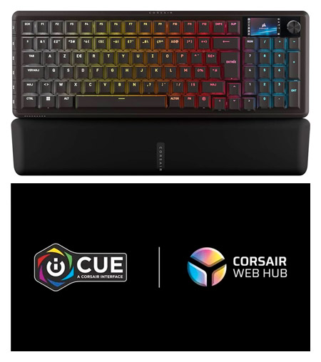 Au mois de septembre dernier, la maque CORSAIR lançait ses nouveaux claviers VANGUARD 96 et VANGUARD PRO 96 qui, comme leur nom l'indique, sont proposés par la marque dans un format 96 % qui dispose quasiment des mêmes touches qu'un clavier classique mais avec des dimensions réduites. Bref, cette disposition 96 % est un bon compromis entre un clavier standard 100 % (Full Size) disposant d'énormément de touches mais occupant beaucoup de place sur le bureau et un clavier 75 % (TKL) voire 60 % (mini) qui sont très compacts mais aussi par définition forts démunis en touches (absence du pavé tactile notamment).Parmi les autres caractéristiques techniques communes de ces deux claviers VANGUARD 96 et VANGUARD PRO 96, on retrouve bien sûr un rétroéclairage RGB, l'usage de la technologie AXON avec un taux d'interrogation à 8 000 Hz, six touches G-Key sur la tranche du clavier qui peuvent être personnalisées avec la fonctionnalité logicielle Elgato Virtual Stream Deck (VSD), la technologie FlashTap SOCD pour gérer la frappe simultanée des touches de direction opposées ou encore un écran LCD IPS 1.9" qui peut être programmé pour afficher des images ou animations. Si le VANGUARD 96 est fourni avec des switches mécaniques interchangeables MLX (Fusion/Plasma/Pulse/Quantum), en revanche, le VANGUARD PRO 96 dispose de switches MGX Hyperdrive c'est à dire d'interrupteurs magnétiques Hall Effect (HE) qui ont été introduits par CORSAIR en 2024 avec le clavier K70 PRO TKL et qui, comme vous pouvez vous en douter, sont censés offrir encore plus de précision, de confort et de durée de vie que les autres technologies... La sortie de ces deux claviers VANGUARD 96 Series s'est également accompagnée de la souris sans fil SABRE v2 PRO qui offre un poids plume de 36 g, une autonomie batterie de 70 heures, l'hyper-polling 8 KHz ou encore le dernier capteur optique CORSAIR MARKSMAN S avec une sensibilité de 33 DPI. iCUE sera bientôt proposé pour ces périphériques en complément du CORSAIR Web Hub Si nous vous parlons de ces nouveaux produits aujourd'hui, c'est au sujet de leur solution logicielle CORSAIR Web Hub qui permet de configurer leurs différentes fonctionnalités (éclairage RGB, assignation des touches/boutons, molette, écran LCD, FlashTap...). Comme plusieurs autres marques de périphériques de jeu récemment, CORSAIR a en effet succombé à la tentation de proposer une version web de son logiciel de configuration iCUE qui se nomme simplement CORSAIR Web Hub et à laquelle on accède avec un navigateur web basé sur Chromium (Chrome/Edge/Opera) qui exploite l'API WebHID du Project Fugu dont nous avons déjà parlé plusieurs fois sur TLD ne serait-ce que parce que c'est cette même API qui est utilisée par l'utilitaire web CORSAIR Firmware Update Utility. L'intérêt de cette application CORSAIR Web Hub pour configurer les claviers et souris CORSAIR réside avant tout dans la légèreté de la chose car la lourdeur du logiciel iCUE et son importante consommation de ressources mémoire et CPU est bien souvent le principal reproche qui est fait aux produits CORSAIR. Ce Web Hub permet de totalement résoudre le problème puisque rien ne fonctionne en arrière plan sous Windows contrairement à iCUE et les paramètres définis par l'utilisateur dans l'interface CORSAIR Web Hub sont simplement sauvegardés dans la mémoire interne des périphériques. Autre avantage, il n'y a plus besoin d'effectuer la moindre installation ou mise à jour logicielle (outre le firmware ponctuellement). On peut donc brancher son clavier ou sa souris sur n'importe quel PC et le configurer immédiatement grâce un simple site web. Cela étant dit, la compatibilité matérielle du CORSAIR Web Hub est limitée aux claviers et souris et encore à quelques modèles seulement pour le moment. Ce type d'outil web n'est pas adapté pour d'autres composants système de la marque comme les barrettes de mémoire, les kits de refroidissement liquide ou encore les ventilateurs pour lesquels un véritable logiciel de bureau comme iCUE est encore la seule solution pour les configurer et personnaliser. Du coup, pour une personne qui possède toute une panoplie de matériels CORSAIR dans son PC, il n'est pas forcément idéal de jongler entre le logiciel iCUE et l'application web CORSAIR Web Hub d'où le souhait des utilisateurs qui ont déjà fait l'acquisition des claviers VANGUARD 96 et VANGUARD PRO 96 ou de la souris SABRE v2 PRO de pouvoir les gérer directement depuis iCUE. Eh bien bonne nouvelle puisque CORSAIR a annoncé il y a quelques semaines que ces trois produits vont bénéficier prochainement d'une compatibilité avec le logiciel iCUE. Le développement est actuellement en cours mais aucune date n'est malheureusement annoncée. On sait juste que ça se fera d'ici quelques mois et qu'iCUE offrira exactement le même niveau de fonctionnalités que le CORSAIR Web Hub pour ces produits. On peut également s'attendre à ce que la liste des périphériques de la marque compatibles avec le CORSAIR Web Hub s'allonge dans les mois à venir même si aucune annonce n'a encore été faite en ce sens. Le CORSAIR Web Hub supporte en effet actuellement uniquement les produits ci-dessous :